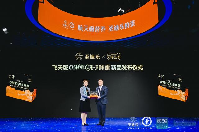 本次發布會現場,圣迪樂聯名天貓首發了新品——飛天版OMEGA-3鮮蛋。康彥榮和天貓生鮮事業部行業總監程琦表示:“圣迪樂與天貓合作已有7年的時間,雙方一直是重要合作伙伴。圣迪樂作為中高端雞蛋市場中市占率第一的品牌,在該領域不斷推動品類發展,研發出一系列的高品質雞蛋。天貓平臺有10億的用戶,其中有大部分是高凈值的母嬰用戶,這部分用戶除了關注食物本身的品質之外,同時也注重食物的營養。天貓的消費群體對于食品和生鮮的需求呈現出向健康營養、品質化消費升級的趨勢。OMEGA-3雞蛋在歐美國家有廣泛的市場需求,圣迪樂此次推出的OMEGA-3鮮蛋以科技內核升級雞蛋營養,帶領中國蛋品行業達到世界水平。天貓希望在這次合作中將航天級營養提供給更多的天貓用戶。”
