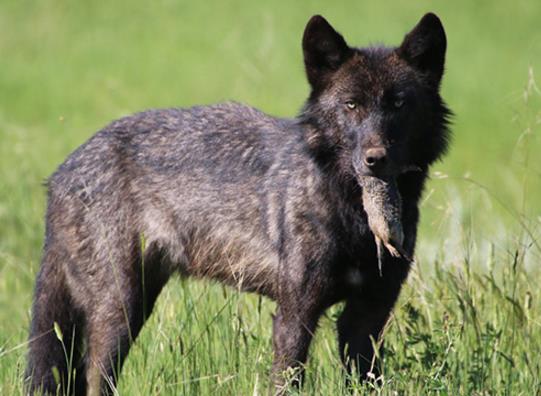 黑狼屬于灰狼的一種變種,在加拿大森林狼或者阿拉斯加苔原狼中均有所產(chǎn)生,這種狼的皮毛為單一的黑色,部分品種胸部以下會(huì)有紅色的皮毛,在北美較為常見(jiàn),美國(guó)懷俄明州的黃石國(guó)家公園重新引入的狼群中有一半為黑色的狼種。