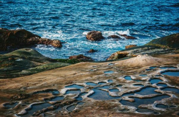 野柳風景區位于臺灣省基隆市西北方約15公里處的基金公路,是一突出海面的岬角(大屯山系),遠望如一只海龜蹣跚離岸,昂首拱背而游,因此也有人稱之為野柳龜,受造山運動的影響,深埋海底的沉積巖上升至海面,產生了附近海岸的單面山、海蝕崖、海蝕洞等地形,海蝕、風蝕等在不同硬度的巖層上作用,形成蜂窩巖、豆腐巖、蕈狀巖、姜狀巖,風化窗等世界級的巖層景觀。