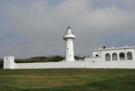 鵝鑾鼻燈塔位于於墾丁國家公園內,是臺灣南部海域夜航船只測定方位的重要座標點,塔身全體白色圓形,內分4層,每層各有鐵梯15級,塔高18米,塔底周長110米,像巨人般巍然屹立在海岸,塔內燈光每隔10秒鐘自動閃亮一次,光力可達20海里,是遠東最大的海上燈塔,有“東亞之光”的美稱,白天登上燈塔頂端,極目遠眺,太平洋與臺灣海峽、巴士海峽碧波萬傾,海天一色,天氣晴朗時,臺灣省最南端,孤懸于波濤中的七星巖隱約可見,偶爾還可看到鯨魚群在海中戲水。