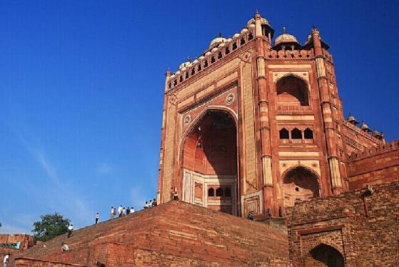 法特浦·西格里古城(Fatehpur Sikri),另譯法塔赫布爾·西格里位于印度北方邦阿格拉市西南面40公里處的阿格拉縣,曾是莫臥兒帝國的首都所在地。此城建于1569年,由阿克巴大帝下令建造,但建成后因水源問題,14年后便廢棄了。該城擁有眾多頗具特色的寺廟和一座氣勢宏大、裝飾豪華的皇宮,突出地體現了莫臥兒文明的輝煌成就。