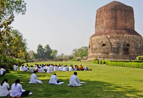 鹿野苑位于印度北方邦瓦拉納西以北約10公里處,是佛教在古印度的四大圣地之一。在這里釋迦牟尼第一次教授佛法,佛教的僧伽也在此成立。相傳,釋迦牟尼在菩提伽耶覺悟成佛后,來到鹿野苑,找到了原來的五位侍者,為其講演四圣諦。他們五位因此有所證悟,隨即出家為五比丘僧,是為佛教僧寶成就,佛、法、僧三寶至此圓滿集結成就。在接下來的雨季中,佛陀就在鹿野苑的牟拉甘陀庫底精舍(mulagandhakuti vihara)講佛法,僧團逐漸擴大到60人左右,后來佛陀派遣他們到各地-。