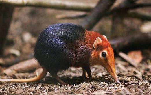 黑象鼩(Rhynchocyon petersi)生活在非洲東海岸的密林之中,是用長鼻子尋找食物的高手。這種小動物的體長不足30厘米,看起來比褐家鼠還小一些。值得注意的是,它們既不是鼠類,也不是鼩鼱,而是一種非常原始的哺乳動物,分類學上屬于“象鼩目”。從親緣關系看,象鼩和大象的關系比和鼩鼱的關系更近。