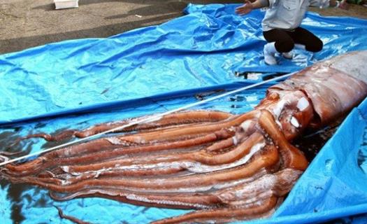 這一巨大烏賊長度為5。9米,重量約為46。7公斤,在457米深的海底捕撈上來的,但是由于其生存環境的突變,這一巨大烏賊捕撈上來沒多久便死掉了。
