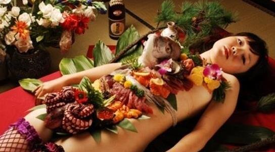 古代日本飲食文化受中國(guó)的影響很大,“女體盛”在日本已有一千多年歷史,如果說(shuō)刺身(生魚(yú)片)、壽司(紫菜米飯團(tuán))是從中國(guó)傳入日本,那么,“女體盛”則是日本人自己創(chuàng)造的。中國(guó)先哲雖有“食色,性也”之說(shuō),但在實(shí)際操作上,未見(jiàn)有像日本“女體盛”那樣將“食”與“色”結(jié)合得如此緊密。可以說(shuō),“女體盛”是古代大和民族極端大男子主義的產(chǎn)物。現(xiàn)代人的飲食理念,認(rèn)為飲食給人的感受是由生理享受和文化體驗(yàn)兩方面共同構(gòu)筑而成。食品真正的滋味只占一半,另一半則是由食品所代表的文化內(nèi)涵,對(duì)進(jìn)食者的特殊意義和進(jìn)食過(guò)程中的心理體驗(yàn)所構(gòu)成。所以,“女體盛”作為日本飲食文化的一種特色,其影響仍然不減。